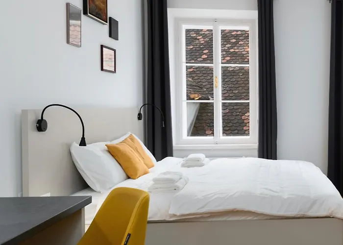Primus Apartments 卢布尔雅那俯瞰着院子,离International Centre of Graphic Arts开车约需5分钟. 这家公寓设有配备电热水壶,冰箱 和炉灶面的厨房.